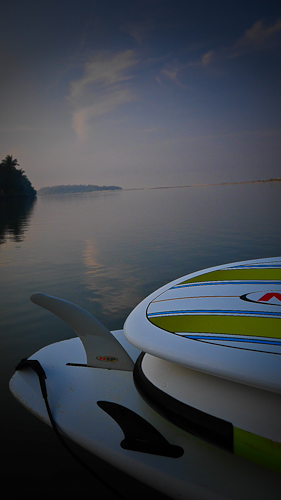 Nachdem ich prophylaktisch 2 Grippostad eingeworfen habe als Reaktion auf meine heiße Stirn und leichte Kopfschmerzen am Nachmittag – (die Malarone tabletten heb ich mir mal für den notfall auf, und wenn, dann kann ich mir die Infektion höchstens in Mumbai zugezogen haben) die Temperaturen liegen an der südindischen Westküste zur Zeit um die 30 Grad Celsius – will ich jetzt vor Sonnenuntergang mit dem jungen Pärchen aus Bangalore, die ich zuerst mit ihrem IPhone vor diversen Surfboards posierend abgelichtet habe, eine Runde SUP Standup Paddeln im Fluss.