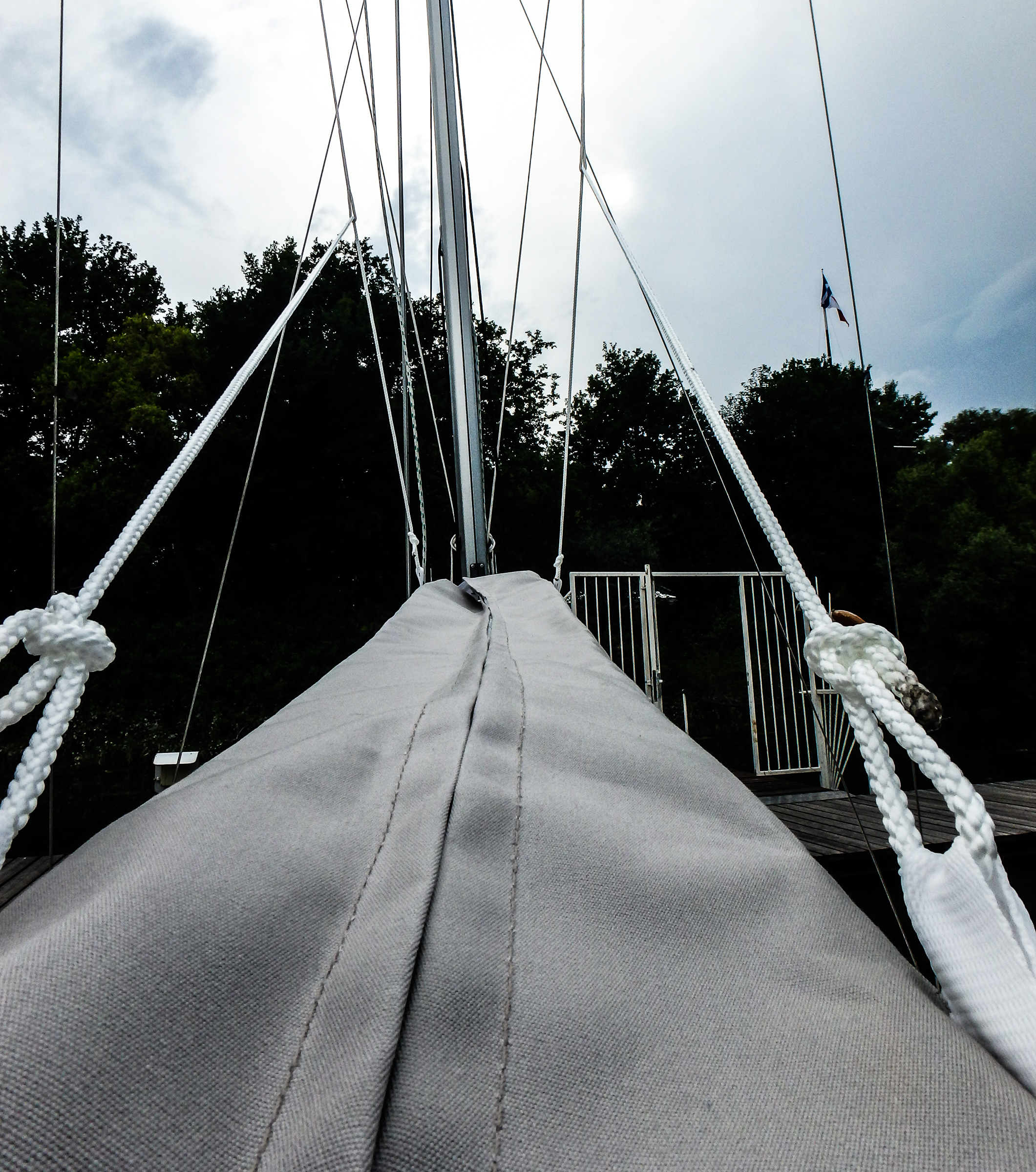 15. Großsegel wieder in Maindropsystem-Persenning rollen