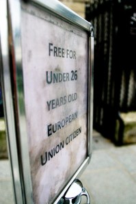 geht’s noch? Nicht dass mich das Innenleben der Notre Dame jetzt wirklich interessiert hätte, aber warum kommen über sechsundzwanzigjährige Europäer und unter sechsundzwanzigjährige von der Europäischen Union Ausgeschlossene bei der lieben Frau von Paris nicht umsonst rein? Das klingt wie: Hunde und Heterosexuelle müssen draußen bleiben…
