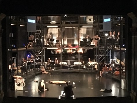 “…der hat ein bisschen zugelegt, hast du gesehen?” fragt mein nun selbst auch tanzender und damit kompetent beurteilender Ballettbegleiter und meint dabei den Tänzer, der dann zum Ende des Stücks I knew then von Johan Inger im Lichtkegel der Scheinwerfer den – wie soll man sagen – Geschlechtsakt des passiv im Hintergrund in einem Wald von Metallstäben stehenden, sich langsam bis auf die Unterwäsche entkleidenden Liebespaares tanzte, dabei glucksende, wie ein Gorilla grölende, wimmernde, ächzende Laute in Gibberish (Kauderwelschsprache) von sich gab und sich letztendlich ebenfalls bis auf die Unterhose entblößen durfte (der Arme). Ein großes Vergnügen für uns Zuschauer, dieses wo anders treffend als “sich in orgiastische Freude wandelnde Prüderie” beschriebene Tanzstück, aber ich habe bei dem Tänzer nur seinen neuen Tom Selleck Schnurrbart bemerkt, nicht den leichten Bauchansatz und schon gar nicht sein für Männer dieser Volksgruppe offenbar charakteristisches Hinterteil.