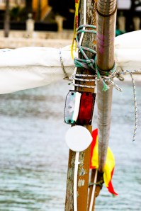 It is always a good advice to keep some distance to big vessels, as the water masses moved by a starting ship’s engine make quite some turbulence, thus difficult to hold a small boat and its spreader away from the lock’s wall.