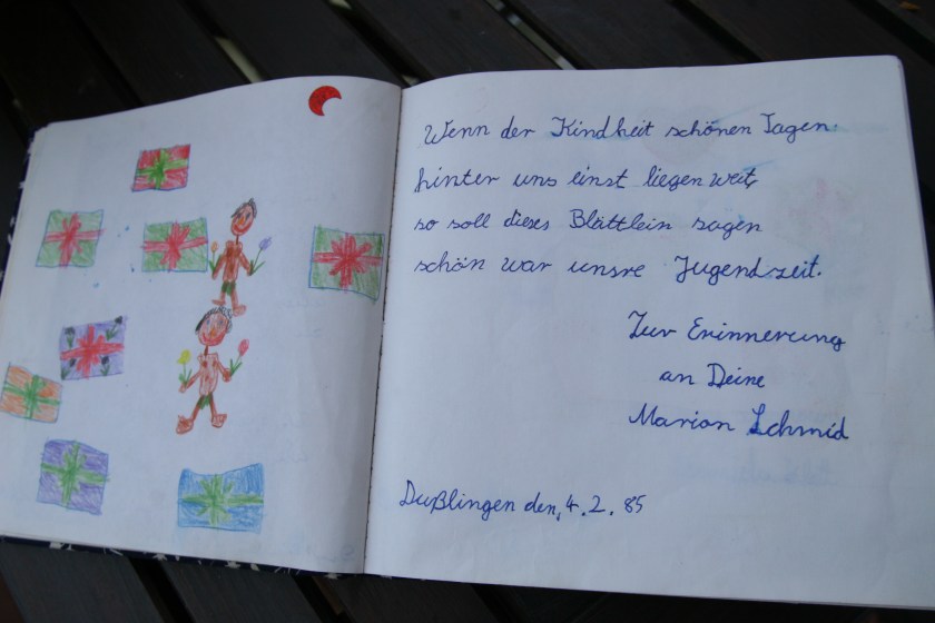früher … konnte man sich wirklich was darauf einbilden, einem freund die ehre erweisen zu dürfen, dessen poesiealbum mit philosophischen reimen in schönschrift und allerlei kreativität zu füllen.