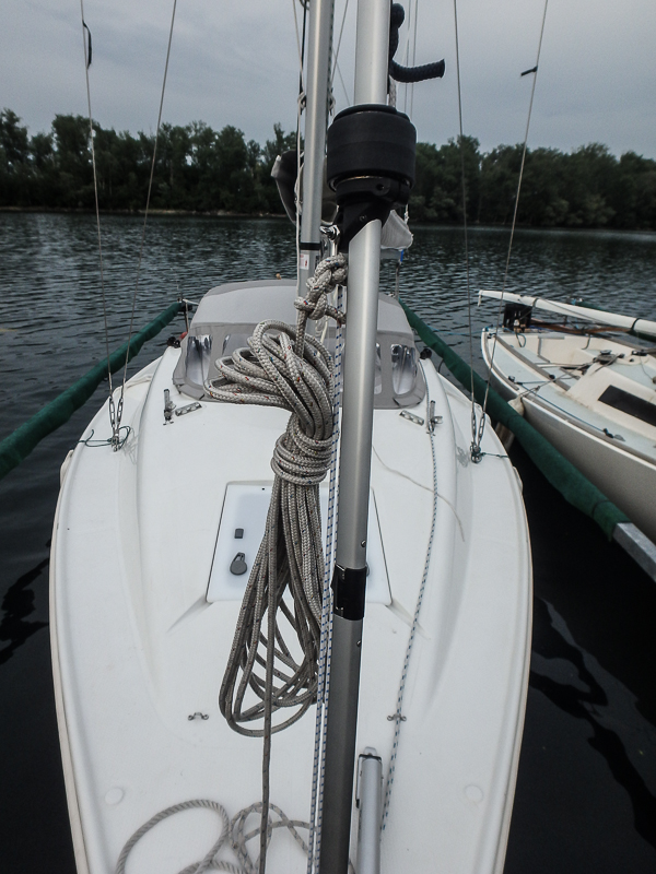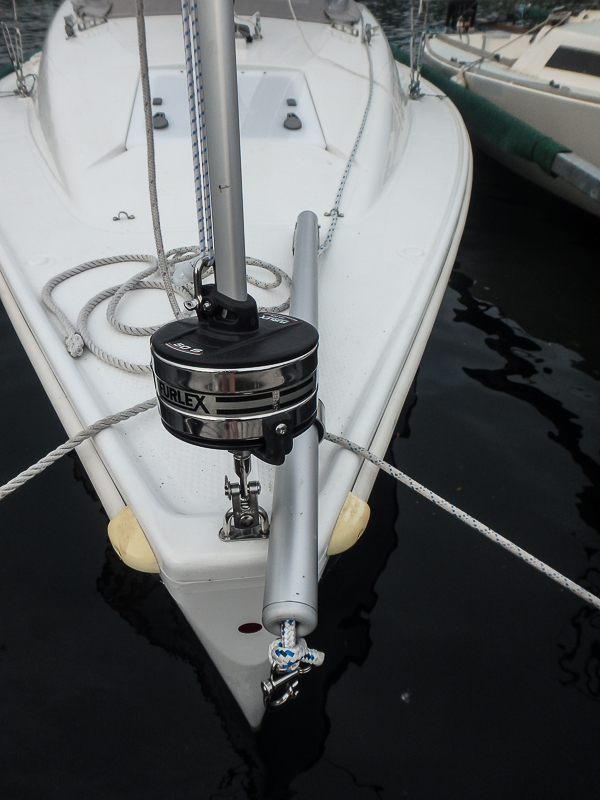 1. Genua aus Furlex Rollreffanlage ausfädeln (an Metallschlitz darauf achten, sodass Segel sauber durch den Schlitz läuft)